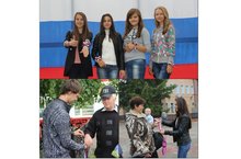Сегодня, 12 июня, в День России в ряде городов страны и ближнего зарубежья проходит масштабная акция "Мы с Россией". В её рамках члены совета старшеклассников раздавали прохожим бело-сине-красные ленточки, символизирующие россиский триколор.