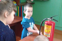 ♦ Тәрбияче Ишмөхәммәтова Ф.Ф. балаларга янгыннарны сүндерәләр торган җайланмалар турында сөйләде һәм күрсәтте, шулай ук балаларга янгыннарны сүндерү- олылар эше икәнен аңлатты, ләкин бу хакта, бала да хәбәр итә ала. Ул балаларга янгын вакытында шалтыратырга кирәк булган телефон номерларын искә төшерде - бу 01 һәм 112.