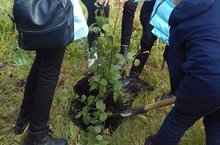 Учащиеся 7 класса под руководством классного руководителя Мошковой Л.И. приняли участие в акции «Лес Победы». В парке, возле обелиска, посадили 2 яблони с табличкой имен героев-земляков, павших в ВОВ.