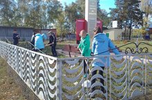 Учащиеся 6 класса, под руководством классного руководителя, провели уборку территории обелиска