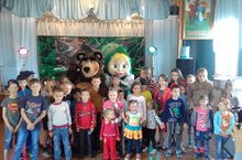 Маша и Медведь — известные герои доброй сказки, которых обожают все детки. Маша – простая и непосредственная, веселая и открытая. А ее друг Миша — спокойный и флегматичный, но очень добрый и отзывчивый мишка. Озорная, веселая программа с любимыми героями Машей и Медведем вызвала восторг и море улыбок у детишек. На протяжении праздника были музыкальные и подвижные игры, увлекательные танцы, задорные шутки, море смеха и веселья. Большой, добрый, дружелюбный медведь Миша и любознательная, шаловливая, неугомонная Маша подарили массу положительных эмоций.