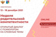 С 13 по 18 декабря 20212 года пройдет Неделя родительской компетентности – открытый диалог с психологом на сложные темы. Мероприятие будет проходит в онлайн-формате.