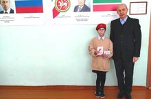 Аксубаевский район представили: начальник штаба Юнармии А.Д.Никитин, юнармейцы МБОУ «Емелькинская СОШ» Егор Михайлов и Дария Коннова. -