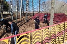 Работники, обучающиеся убирают территорию школы, тем самым создают чистоту, порядок и уют вокруг школы.