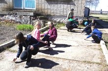 Дети посвятили свои рисунки на асфальте Дню Победы