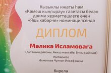 Сегодня в Набережночелнинском лицее-интернате № 84 имени Гали Акыша состоялась церемония вручения премии имени Шауката Галиева «Серебряный колокольчик» собирает друзей».В этом мероприятии приняли участие учитель нашей школы Ахметова Чулпан Инсафовна и ученица 6 класса Малика Исламова.Малика победила в номинации"Самый активный юный корреспондент", получила диплом и памятный приз. Руководителю, Чулпан Инсафовне было вручено благодарственное письмо.