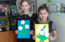 Укучылар, бәйрәм уңаеннан, әниләренә төрледән-төрле матур котлау открыткалары ясадылар.