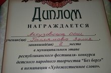 "Без бергә" балалар халык иҗаты фестиваль конкурсының район этабында Галләмова Зәлия 2 урынга ия булды.Диплом белән бүләкләнде.