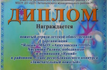 Вожатый отряда детской общественной организации "Ялкын" МБОУ "Аккузовская ООШ" Хисамова Ралина победила в номинации "Яркий" в районном этапе республиканского конкурса "Замечательный вожатый".