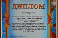 Наследник детской общественной организации "Ялкын" МБОУ "Аккузовская ООШ" Багауова Гульгена получила 2 место в номинации "Техника исполнения:Акварель" в конкурсе "Дети рисуют Победу",проведённого в рамках республиканской историко-патриотической акции "Родные лица Победы".