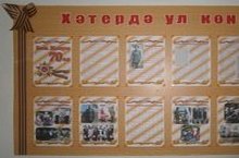 Бөек Җиңүнең 70 еллыгын каршылап, мәктәпнең "Туган якны өйрәнү музее" фойесына "Хәтердә ул көннәр..." темасы астында стенд эшләнде. Бөек Ватан сугышы елларына багышланган материаллар күргәзмәсе урнаштырылды. -