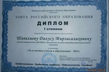 "Рәсәй мәгарифенең элитасы" рәсәйкүләм конкурста катнашып, "Мәгарифтә ирешкән уңышлары өчен - 2013" номинациясендә информатика укытучысы Д.М.Шавалиев I дәрәҗә Халыкара премия лауреаты дипломына ия булды.