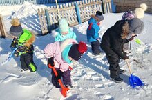 Воспитанники ДОУ «Аккузовский д/с» время зря не теряют. Во время дневной прогулки успевают и играть, и помогать воспитателям расчищать снег. Ребенок, помогающий с детства, и впредь будет старательным, трудолюбивым. ///