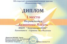 2023 нче елның 7 декабрендә Актанышның балалар иҗат үзәгендә инвалидлар декадасы кысаларында районкүләм 19 нчы мәртәбә үткәрелүче «Өмет торналары» оригами кул эшләре бәйгесендә 3 класс укучысы Әхмәтова Язгөл I урын алды. Ул диплом hәм истәлекле бүләккә лаек булды. Җитәкчесе: Гарипова Энҗе Флүн кызы. Котлыйбыз!