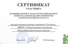 13 января 2022 года прошел муниципальный этап Республиканского конкурса родительских комитетов «Секреты дружного класса». Этот конкурс помогает выявлять лучший воспитательный тандем школы и семьи. Интересные творческие задумки, игры, песни, театрализованные представления - это еще один повод крепче подружиться, стать сплоченной командой, способной преодолеть любые трудности. Родительский комитет нашей школы получил сертификат участника.///