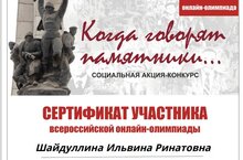9 ноября 2022 года учащиеся школы приняли участие в онлайн-конференции, посвященной участникам Великой Отечественной войны, которая проводится в рамках Всероссийской акции "Когда говорят памятники". Частью мероприятия стала онлайн-олимпиада, посвящённая подвигу участникам Великой Отечественной войны.///
