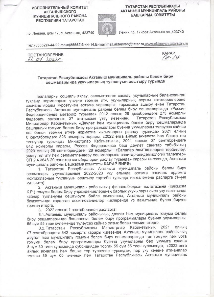 ПР-239 от 03.12.2021 Об организации питания учащихся в Актанышском МР РТ