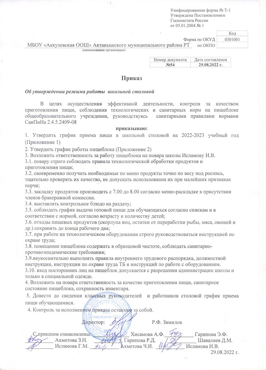 Приказ об организации горячего питания в 2022-2023 учебном году