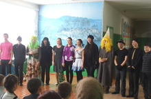 Башлангыч сыйныф укучылары үзләренең иҗат җимешләре белән бакчадагы балаларны сөендереп кайттылар: театр тамашачасы белән чыгыш ясадылар. Җитәкчеләре(Мирзаянова Р., Гарданова З.)