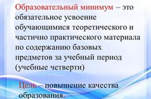 Образовательный минимум - это минимальная часть предметных знаний, которую обучающийся должен усвоить на определенном этапе учебного процесса.