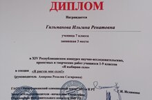 Дәүләт автоном белем бирү учреждениесе мәгариф һәм фән министрлыгының “Республика олимпиада үзәге” оештырган 1-9 нчы класс укучыларының “Мин авылны сайлыйм” XIV Республика фәнни-эзләнү, проект һәм иҗади эшләр бәйгесендә Чалманарат төп белем бирү мәктәбенең 7 нче класс укучысы – Ильгинә Ренат кызы Гыйльманова - “Мин авылымны ясыйм” секцияседә 3 нче урын алды һәм Диплом белән бүләкләнде. Җитәкчесе - Розалия Сәгыйрь кызы Әмирова. Котлыйбыз! Киләчәктә дә уңышлар телибез./В XIV Республиканском конкурсе научно-исследовательских, проектных и творческих работ учащихся 1-9 классов “Я выбираю село” , организованном ГАОУ “Республиканский олимпиадный центр” МоиНРТ ученица 7 класса МБОУ “Чалманаратская ООШ” Гильманова Ильгина Ренатовна награждена Дипломом за 3 место в секции “Я рисую мое село!”