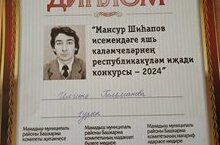 Чалманарат мәктәбенең 6 нчы класс укучысы Илгинә Гыйлманова Мамадыш районында үткән Мансур Шиһапов исемендәге яшь каләмчеләрнең республикакүләм иҗади конкурсында 1 нче урынга лаек булды.Укытучысы Галимҗанова Р.С./ Ученица 6 класса МБОУ "Чалманаратская ООШ" Ильгина Гильманова заняла 1 место в республиканском творческом конкурсе имени Мансура Шигапова, проведенном в Мамадышском районе.
