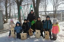 3 апрельдә “Ак каен” балалар бакчасында “Кошларга ничек ярдәм күрсәтергә?” темасына әңгәмә уздырдылар. Балалар кошларга ярдәм итү өчен җимлеккә көнбагыш салырга һәм оялар ясарга кирәклеген искә төшерделәр. Әңгәмәдән соң, саф һавга чыккач, балалар тәрбияче белән бергә әти-әниләре ярдәмендә эшләгән сыерчык ояларын элделәр./3 апреля в детском саду "Ак каен" провели беседу "Как помочь птицам". Дети запомнили, что поддержать птиц просто: нужно подсыпать семечки в кормушку и сделать новый дом для птиц.