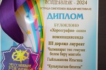 Мәктәбебездән Г.Р.Гыйльманова “Хореография-соло” номинациясендә III дәрәҗә лауреат. Котлыйбыз! Киләчәктә дә уңышлар телибез!/ И.Р.Гильманова из нашей школы лауреат III степени в номинации “Хореография-соло”. Поздравляем! Желаем дальнейших успехов!