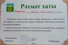 Мәктәбебезнең ата-аналар комитеты җитәкчесе – В.Ә.Гыйльманова район мәгариф җитәкчесенең “Рәхмәт хаты” белән бүләкләнде. Котлыйбыз! Яңа уңышлар телибез./Руководитель родительского комитета школы В.А.Гильманова награждена благодарственным письмом руководителя образования района. Поздравляем! Желаем дальнейших успехов.