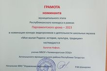 Һәр өлкәдә актив катнашучы 9 нчы класс укучысы – Р.Р.Зарипов “Рәхмәт хаты” белән бүләкләнде. Котлыйбыз!/ “Благодарственным письмом» награжден активный участник в каждой области ученик 9 класса Р.Р.Зарипов. Поздравляем!