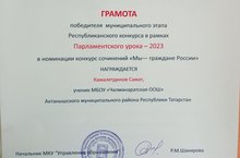 Мәктәбебезнең “Ел укучысы – 2023” исеменә 8 нче класс укучысы - Самат Камалетдинов лаек булды. Котлыйбыз!/Ученик 8 класса Самат Камалетдинов удостоен звания “Ученик года – 2023”. Поздравляем!