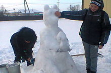 Мәктәптә һәм мәдәният йорты каршында укучылар һәм укытучылар кар сыннары ясый башладылар.