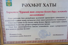Чуракай төп гомуми белем бирү мәктәбе коллективы Рәхмәт хаты белән бүләкләнә.