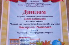 6 сыйныф укучысы Насирова Рәмилә "Татмедиа" Акционерлык Җәмгыяте "Көмеш кыңгырау"республика балалар һәм яшүсмерләр газетасы оештырган "Саумы, мәктәбем!" фотобәйгесендә катнашып, диплом белән бүләкләнде.