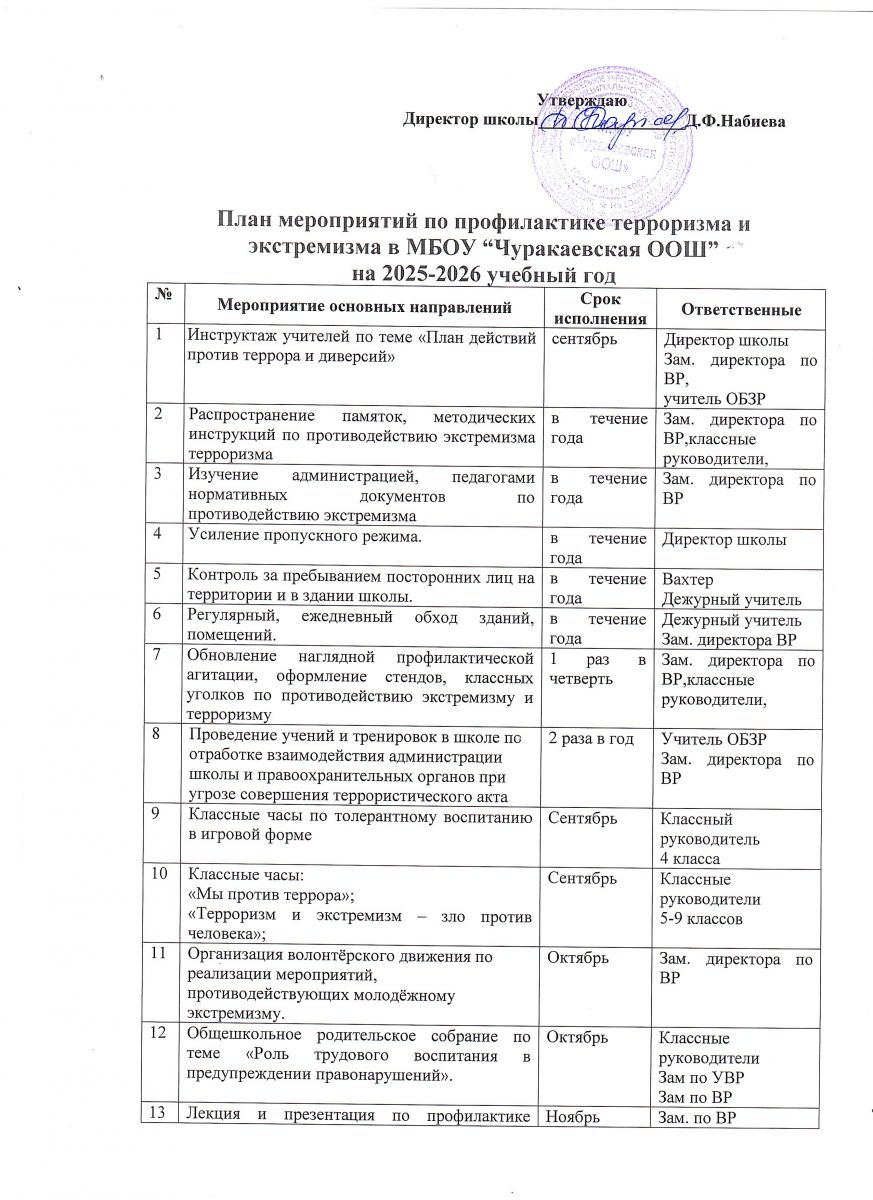План мероприятий по профилактике терроризма и экстремизма на 2024-2025 учебный год