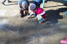 Мәктәпкә әзерлек төркеме балалары "Кояшлы балачак!" темасына асфальтка рәсемнәр төшерделәр, рәсемнәрдә балаларның күңелле, шат мизгелләре чагылды.