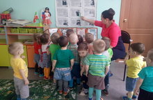 Лотфуллина Л.Г : Тәрбиячеләр тарафыннан бүген курчак театры күрсәтелде . Максаты: Өлкәннәр һәм балалар белән ирекле аралашуны үстерү, тирә-юньдәгеләр белән үзара тәэсир итешүнең конструктив ысулларына һәм чараларына ия булу. Балаларда сөйләм теленең барлык компонентларын: сөйләмнең грамматик төзелешен, бәйләнешле сөйләмне — аның диалогик һәм монологик формаларын үстерү; сүзлек запасы формалаштыру, сөйләмнең аваз культурасын тәрбияләү. Матур әдәбият әсәрләрен тыңлау теләге һәм тыңлый белү, вакыйгалар барышын күзәтә белү сәләте тәрбияләү.