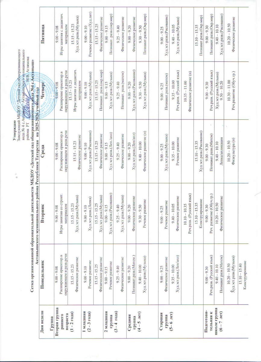 Учебный план МБДОУ "Детский сад № 4 с.Актаныш" на 2024-2025 учебный год