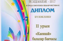 Безнең балалар бакчасы "Йолдызлык-2017" бәйгесендә район балалар бакчалары арасында призлы 2 урынга лаек булды.