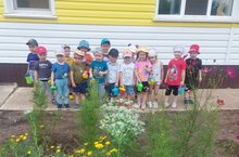 Без 1 кечкенәләр төркеме балалары белән чәчәклектә үскән чәчәкләрнең матурлыгына сокландык һәм аларга су сиптек. Тәрбияче: Салихова М.М.