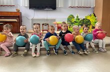 Бүген ясле төркеме балалары белән ял вакытларын төрләндерер өчен залда булдык. Туплар, кеглялар белән уйнадык, рәхәтләнеп сикердек һәм уйнадык. Безгә бик күңелле булды һәм балаларга бик ошады