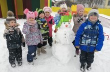 Раскраснелась детвора — Накатала три шара! Друг на друга их сложили, И ведро нагромоздили. Нос — морковка, уголь — глазки, Снеговик из детской сказки! Руки — ветки, рот — конфета…Пусть стоит теперь до лета! Проводим последний день зимы, делая Снеговика! Дети и воспитатель старшей логопедической группы Башарова А. А.
