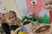 Сегодня ясельная группа познакомилась с комнатными растениями. Поливали фиалку, нюхали красивые белые цветочки. Детям было очень весело! Воспитатель: Закиржанова Л.Р.