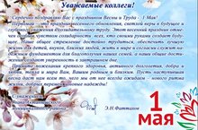 Барыгызны да 1 Май – Яз һәм хезмәт бәйрәме белән котлап, ныклы сәламәтлек, гаилә иминлеге һәм хезмәт уңышлары телибез! Туачак һәр көнегезгэ аяз күк йөзе, тынычлык алып килсен! Илләребез - тыныч, ризыгыбыз - киң, табыннарыбыз һәрчак мул булсын!