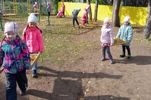 Мәктәпкә эзерлек торкеме балалары хезмәтне сөяләр, өлкәннәргә ярдэм итэргэ бик яраталар. Алар кон саен уз мәйданчыкларындагы яфракларны жыялар, түгәләр.