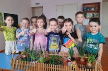 Мы – воспитатели и воспитанники старшей логопедической группы, в нашем “зеленом” саду посадили лук, огурцы, горох, цветы.
