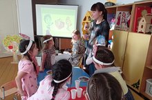 Мәктәпкә әзерлек төркеме балалары педагогик киңәшмәгә әзерлек кысаларында шөгыль күрсәтте. Шөгыль "Әкият аланында" дип атала иде. Балалар биремнәр үтәп Көлгенәгә ярдәм иттеләр. Эшчәнлек азагында "Куян һәм төлке" әкиятен сәхнәләштерделәр.