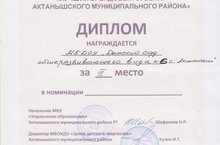 Район күләмендә уздырылган "Актаныш муниципаль районының иң брендлы сувениры" бәйгесендә безнең балалар бакчасы педагоглары да актив катнаштылар. Алар арасында Халилова А.А. 1 урынга, Нуриева З.Р. төркеменнән Хусниев Динияр 1 урынга лаек булдылар. Ә балалар бакчасы призлы 3 урынга лаек булды.