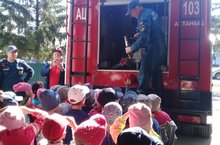 Балаларның янгын чыгу куркынычсызлыгы турында һәм янгын сүндерүчеләрең һөнәрләре турында белемнәрен ныгыту, ут-күзчыкмасын өчен үтәлергә тиешле кагыйдәләр белән танышу һәм балаларның сөйләм телләрен үстерү, бу һөнәрдәге кешеләр турында горурлык хисе уяту максатыннанбалалар бакчасының зурлар һәм мәктәпкә әзерлек төркеме нәниләре "Татарстан Республикасының янгынга каршы федераль хезмәтенең 15 нче отряды" Федераль дәүләт казна оешмасының 103 нче янгын сакчылыгы бүлегенә сәяхәт кылдылар. Балалар янгын сүндерүче машиналарның җиһазлары һәм янгын сүндерүчеләрнең киемнәре белән таныштылар, кайбер киемнәрне киеп тә карадылар. Шулай ук алар янгын бүлегенең диспетчер бүлмәсендә дә булдылар. Хезмәткәрләр Марат Арсланов һәм Фәрит Лотфуллиннар аларга кызыклы һәм аңлаешлы итеп янгын сүндерүчеләр турында сөйләде.