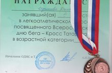 Рәсәй күләмендәге йөгерү көне кысларында уздырылган җиңел атлетика кроссында бакчабыз коллективы актив катнашты. Иң өлкән яшьтәгеләр арасында Идрисова Дилә Җихангир кызы 3 нче урынга лаек булып, Мактау кәгазе, медаль һәм истәлеклә бүләк белән бүләкләнде.
